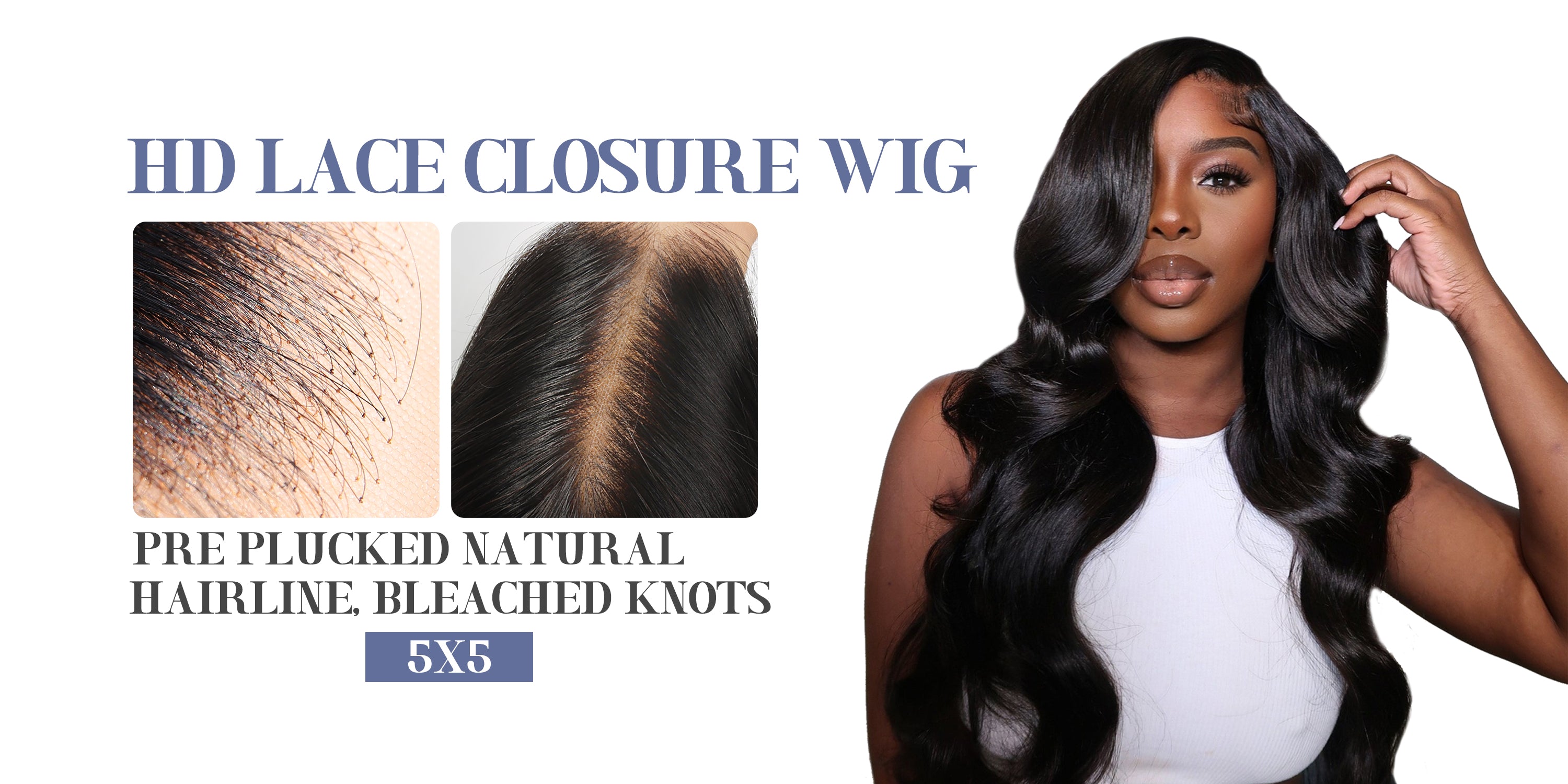 SL'HAIR 1B# Black Color Real HD 5*5&6*6 Lace Closure Wig Body Wave Pre Plucked