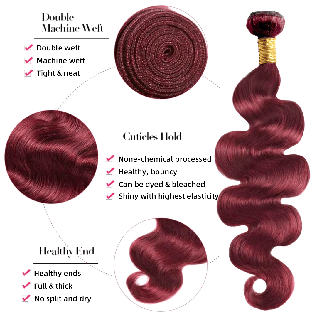 SL'HAIR 3Pcs 99J Color Wave Bundles 100% Human Remy Hair