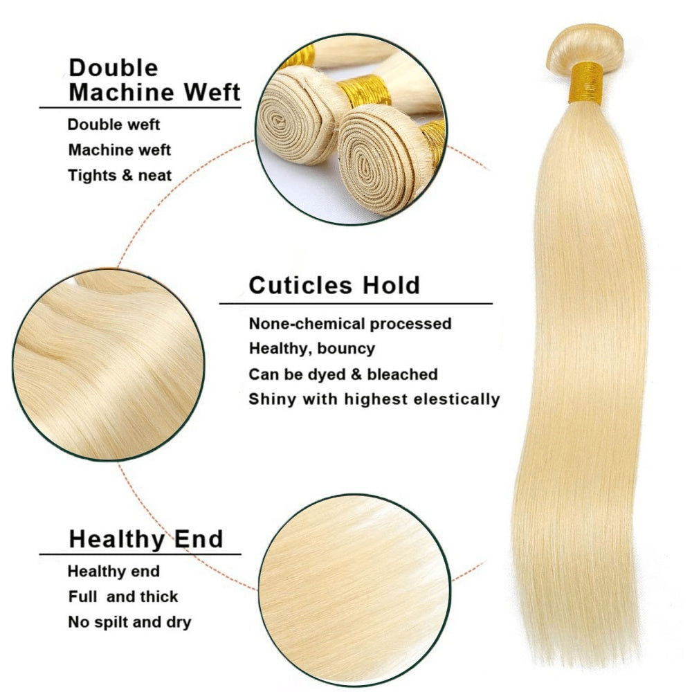 SL'HAIR 613# 5x5 Invisible Real HD Lace Closure with 3 Bundles 100% Human Hair Straight